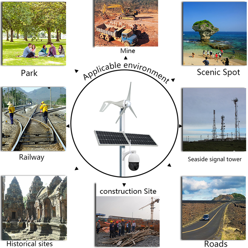 3. The system can make full use of new energy,environment-friendly. If no wind and no sunshine, the camera can continuously work 2 days.